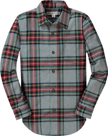 Our flannel button down shirts are made with super soft organic cotton in a range of richly colored classic plaids. Features sueded fabric on both sides for a soft and lofty finish that resists pilling and ensures a long life to be worn, loved, and passed down. Faux suede elbow patches and faux tortoiseshell buttons at the sleeve cuffs and center front. This shirt is also part of our family dressing collection and can be found in our Mens section.