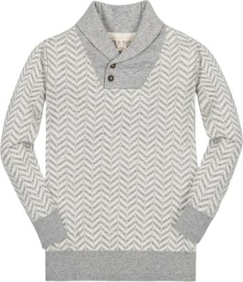 Our shawl collar sweater in soft organic cotton is the ultimate in comfort and style for your boy. Special attention to details such as the shawl collar with button closure and allover intarsia design make this an instant classic that can be worn on repeat and handed down time and again.