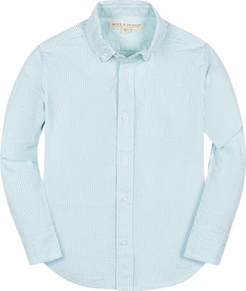 Our classic long sleeve button down shirt is cut from soft organic cotton seersucker that has a light and breathable feel. Features classic styling that makes it so easy to dress up or down, like roll up sleeves, buttons at the center front and a functional chest pocket. A spring staple that he'll love.