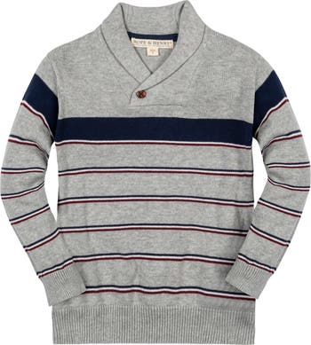 Our shawl collar sweater in soft organic cotton is the ultimate in comfort and style for your guy. Special attention to details such as the shawl collar with button closure and interesting stripe placement make this an instant classic that can be worn on repeat and handed down time and again.