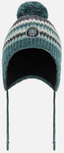 With rib knit stitching and horizontal stripes, our Peruvian Knit Hat Gradient Green makes every cold day more stylish! Super soft with a cozy lining, this hat features earflaps for added coverage, side strings, a fluffy pompom, and a logo patch on the front.
