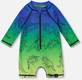 Baby Boy's Printed Long Sleeve One-Piece Rashguard Vibrant Blue And Green Dino