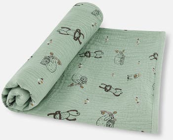 Baby Boy's Printed Muslin Blanket Sage Monkey