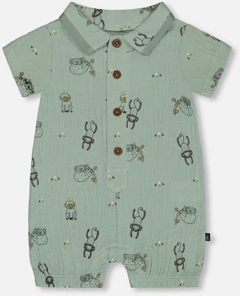 Baby Boy's Printed Muslin Romper Sage Monkey