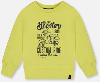 A cool moped graphic adds vintage-inspired style to our Pullover Graphic Sweatshirt Lime Green. Comfy and cozy, this sweatshirt features a loose, relaxed fit with long sleeves, dropped shoulders, and a crew neckline. It's a bold, bright way to layer up on a chilly spring or summer day!