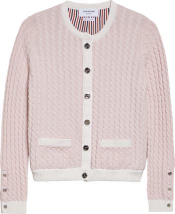 Tricolor stripes at the placket, cuffs and lining bring signature flair to a cashmere cardigan textured with baby cables and finished with anchor-embellished buttons.