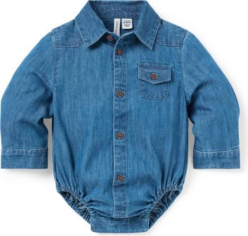 Consider our classic chambray bodysuit a forever favorite. Designed with a little buttoned chest pocket, it goes with just about everything.