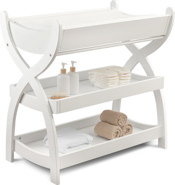 - Ample Storage with Two Open Shelves: Comfy Cubs diaper changing table features two spacious shelves to keep all your baby essentials within reach. It's great for nappies, wipes, clothes, and more, especially in small spaces.