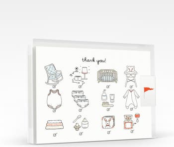 This 8-pack of greeting cards is elegantly illustrated by artist Ingrid Ramus, founder and owner of the Ramus & Co brand. Artwork features an assortment of baby items with "thank you". All greeting cards are made in the USA on heavyweight uncoated and locally-sourced and manufactured card stock. Each card is accompanied by a hand-embossed envelope made with heavyweight 95lb paper and a peel-and-stick flap - no licking envelopes here! All Ramus & Co. greeting cards are printed on FSC and SFI certified paper sourced from a regional mill that harnesses 66% of its energy from on-site sustainable sources, such as emission-free hydroelectricity and biomass co-generation from wood waste. All 8 greeting cards come packaged as a boxed set. Husband-and-wife team Calvin and Ingrid Ramus founded Ramus & Company in 2019, in New England, USA. Ingrid, the creative designer behind the brand, originates from Mexico, where she cultivated her skills in fashion and textile design. Drawing from her unique and inquisitive perspective on preppy style, Ingrid prolifically designs whimsical yet classic stationery and lifestyle items.
