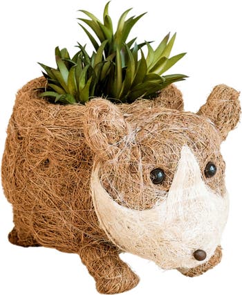 Handwoven by artisans from natural coconut coir, this whimsical dog-shaped planter brings rustic paw-sonality to your living space while displaying succulents and small floral arrangements.
