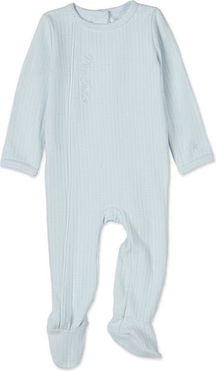 Pamper your pint-sized star with this adorable everyday footie. The luxe fabric blend combines super-soft cotton with silky rayon and flexible spandex, while the delicate pointelle texture adds airy ventilation. Result? Heavenly comfort. "Mon Etoile"(My Star) embroidery adds a stellar finishing touch.