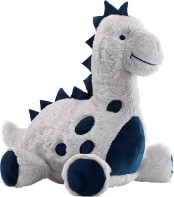 Meet Spike. He is a friendly dinosaur plush stuffed animal toy that sits 9” tall. His body is a super soft faux fur and his tummy, bottom of his feet and spikes are a navy velour. His navy dots, eyes, and mouth are all embroidered making him safe for all ages, even baby. He is sure to become your child's favorite.
