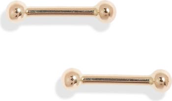 Petite dumbbell-shaped studs handcrafted from gleaming 14-karat gold will lend the perfect pop of polish to your everyday stack.