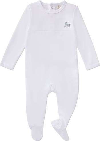 Pamper your tot's tender skin with this blissfully comfy footie. The secret's the superior fabric: 100% Pima cotton, featuring longer, silkier fibers for ultimate soothing softness. Then there's the cozy design, with snug-fitting bodice and gently elasticized feet. Finishing touch? Our charming embroidered pony.