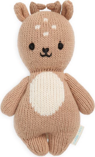 Introduce an adorable and cuddly woodland friend to your little one's nursery with this hand-knit cotton plushie in the shape of a sweet fawn.
