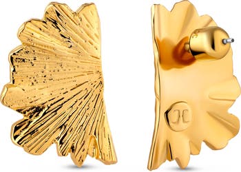 Handcrafted by New York artisans, these exquisitely carved ginkgo-leaf earrings plated in 14-karat gold bring botanical beauty to your lobes.
