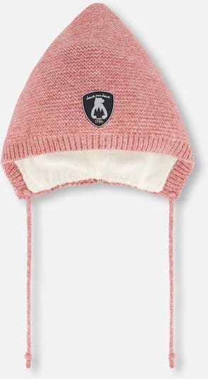 In a pointed shape with a soft and cozy lining, our Baby Pointed Knit Hat in Pink is a must-have on cold days. Detailed with side strings and a logo patch, this hat coordinates easily with a variety of cold weather coats and adorable snowsuits!
