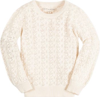 Balloon sleeves and a refined pointelle stitch take our soft crew neck pullover sweater from simple to simply-perfect! Features a comfortable, relaxed fit for your girl in our luxuriously soft organic cotton. Can easily be dressed up or down, and looks adorable paired with our assortment of organic cotton skirts, jumpers, and leggings!