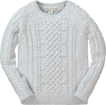 This showstopper of a sweater will have your girl covered during cooler months. Features a gorgeous cable knit in soft organic cotton throughout the entire sweater.