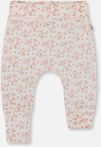 Baby Girl's Organic Cotton Pointelle Evolutive Pant Printed Pink And White Flowers