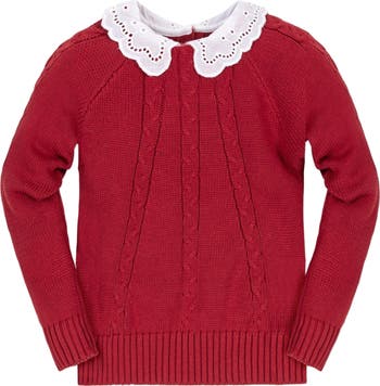 Baby Girls' Organic Eyelet Collar Cable Sweater, Infant