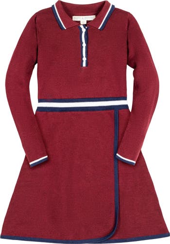 Our collared sweater dress exudes preppy schoolgirl perfection for fall. Crafted from soft organic cotton, this dress features a pointed sweater knit collar, contrast tipping, a faux wrap detail, and a henley button placket. A sporty yet feminine look she'll want to wear time and time again.
