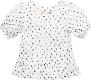 A girly peplum hem and fun bubble sleeves define this soft top, cut from organic cotton jersey with a hint of stretch for comfort. A button at the shoulder placket adds a special detail and makes for easy dressing. Pairs beautifully with our collection of shorts for a summer look she will love!