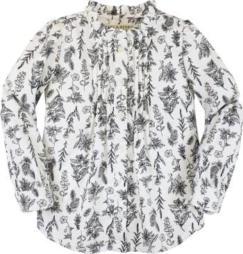Delicate pin tucks and a sweet ruffled collar make this soft organic cotton blouse an effortless match for our organic cotton denim or ponte leggings! Features pin tucking at the front yoke, a petite ruffled collar, and buttons at the sleeve cuffs and center front. A perfectly polished look for all occasions!