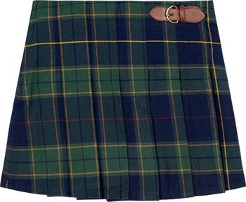 This classic pleated schoolgirl skirt is a great way to create a polished fall look for your girl. Features a faux leather buckle detail, hidden side zipper for easy on and off, and beautiful pleating throughout. Cut from our luxuriously soft organic cotton woven fabric. Pair it with one of our beautiful sweaters for a complete look!
