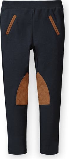 Hope & Henry Baby Girls' Ponte Riding Pant, Infant, Main, color, Black With Brown Faux Suede