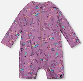 Baby Girl's Printed Long Sleeve One-Piece Rashguard Old Mauve And Multicolored Butterflies