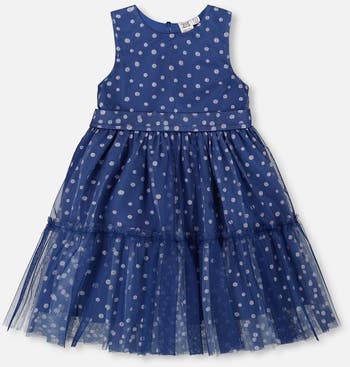 Baby Girl's Printed Tiered Dress Blue With Daisy Print