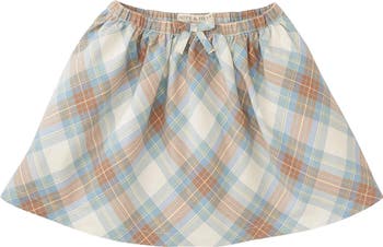 Getting ready has never been easier (or cuter) with our easy pull-on skirt in a beautiful neutral plaid with pops of blue. Features an elastic waistband with a bow and a gently flared skirt. Pairs perfectly with our collection of beautiful organic cotton blouses and sweaters for a complete fall look.