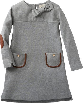 Your girl will be ready to show up in style to school this fall! Perfect for picture time or play time, the thick knit fabric has plenty of stretch for comfort and the suede details at the elbows and pockets add an equestrian touch. Gold buttons at the front add just the right amount of sparkle.