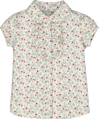 Baby Girls' Ruffle Front Shirt with Puff Sleeves, Infant