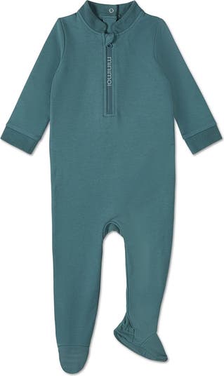 Here's the perfect everyday outfit for your busy little wiggleworm: our comfy long-sleeve footie with sporty half-zip styling. It comes in a soft cotton blend with a dash of knit-in stretch for freedom at every turn. Plus, it has sturdy back closures for quick, easy on-and-off.