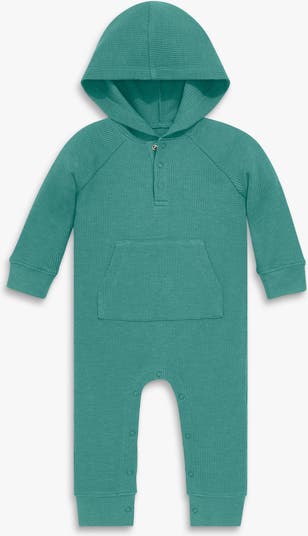 When it gets really cold, we want to stay warm–simple as that. So we made this easy, hooded one-piece for baby with a just-right amount of warmth and coziness, plus a hint of stretch so they can toddle freely. Features 3 front snaps, front kangaroo pocket for stashing puffs and bottom snaps for easy dressing