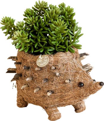 Handwoven by artisans from natural coconut coir, this whimsical hedgehog-shaped planter brings warmth, whimsy and rustic personality to your home or garden while displaying succulents and small floral arrangements.