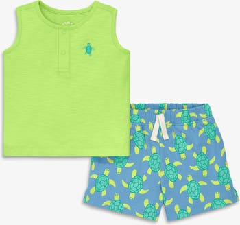 A ready-to-go tank and shorts combo that makes getting baby dressed simple (and keeps them comfortable once they are). Henley tank features two front snaps for easy on-and-off over the baby’s head and shorts with side pockets and an elastic waist with decorative drawstring. Made from 100% cotton jersey that is incredibly soft and breathable. Pre-washed to minimize shrinkage.