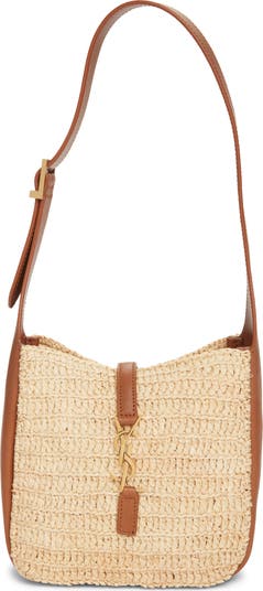 Done in a mix of crocheted raffia and smooth calfskin leather and branded with antiqued YSL insignia, this aptly named bag is perfect for all your after-work social activities.