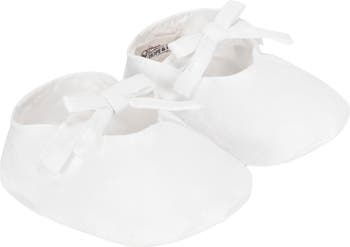 You'll love seeing those baby feet wiggle in our linen slipper booties. Crafted from a soft linen and organic cotton blend and with a decorative bow closure, it's the perfect outfit completer to our range of rompers and dresses for baby. Perfect as a baby shower gift or a treasured heirloom piece for your family.
