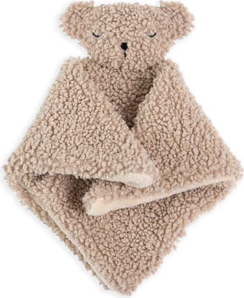 A sweet, plush bear hugs lovingly on a cozy fleece blanket that's perfect for keeping your baby comfy and warm.