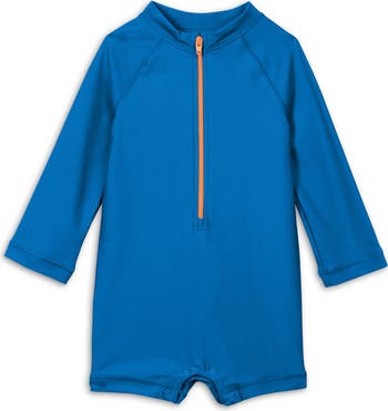 A solid choice for all-day fun in the sun. Enjoy slather-free protection thanks to the long sleeves on this one-piece rash guard. 80% recycled nylon/20% spandex UPF 50+ protection Front half-zip for easy dressing over baby's head Bottom snaps for quick diaper changes Machine wash, line dry