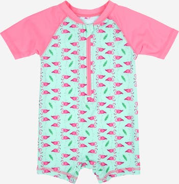 Never worry about your little ones in the sun with the Baby One Piece Rash Guard, ideal for those lazy days at the pool or the beach. Each product consists of short sleeves and a zip-up design at the chest to provide a comfy feel, all while the wearer’s skin is protected thanks to the fast drying nylon material. Rashguards come in a variety of colors and designs to match children’s stylish look, ensuring a memorable experience no matter the occasion. Sizes are offered from 3 to 18 months old, consider a larger option to accommodate an even looser feel for your wearer. Every Baby One Piece Rashguard will become a summer favorite!