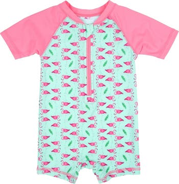 Never worry about your little ones in the sun with the Baby One Piece Rash Guard, ideal for those lazy days at the pool or the beach. Each product consists of short sleeves and a zip-up design at the chest to provide a comfy feel, all while the wearer’s skin is protected thanks to the fast drying nylon material. Rashguards come in a variety of colors and designs to match children’s stylish look, ensuring a memorable experience no matter the occasion. Sizes are offered from 3 to 18 months old, consider a larger option to accommodate an even looser feel for your wearer. Every Baby One Piece Rashguard will become a summer favorite!