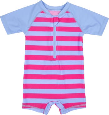 Never worry about your little ones in the sun with the Baby One Piece Rash Guard, ideal for those lazy days at the pool or the beach. Each product consists of short sleeves and a zip-up design at the chest to provide a comfy feel, all while the wearer’s skin is protected thanks to the fast drying nylon material. Rashguards come in a variety of colors and designs to match children’s stylish look, ensuring a memorable experience no matter the occasion. Sizes are offered from 3 to 18 months old, consider a larger option to accommodate an even looser feel for your wearer. Every Baby One Piece Rashguard will become a summer favorite!