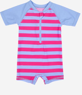 Leveret Baby One-Piece Rashguard, UPF 50+ Sun Protection Swimwear, Main, color, Striped Purple & Denim