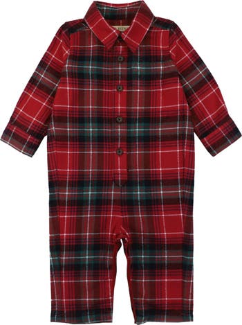 Thanks to our signature organic cotton flannel, our long sleeve woven one-piece will get your little guy dressed up for the holidays in style. Features a classic collar, button closure down the center front, functional front pocket, and concealed ring snaps at the inseam for easy dressing. Teeny tiny faux suede elbow patches are the finishing touch. Matches back to the family for the perfect picture-taking moments!