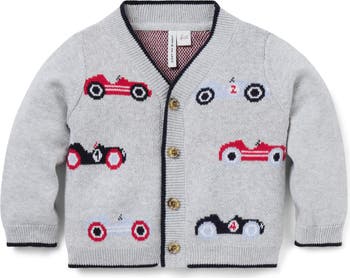 A winning look for cozy first moments. Our cardigan in soft, pure cotton features allover intarsia-knit race cars, sporty stripes and ribbed details too.