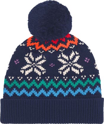 Our beanie is a go-to accessory for blustery (or can’t-find-the-hair-brush) days. And as if our fair isle couldn't be more festive, we took things up a notch and added snowflakes. Thick, soft and naturally stretchy, with a magically lightweight warmth. Machine washable. Fit: Snug fit; refer to size chart for specific measurements.